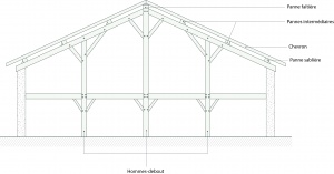 [[Fichier:Charpente ferme sur hommes-debout.jpg|vignette|333.2x333.2px|Charpente à ferme sur hommes-debout