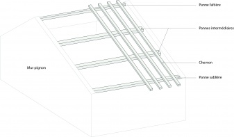 Il s’agit de la technique élémentaire de construction d’une charpente. Les pannes s’appuient sur les murs pignons et les chevrons sont ensuite posés sur celles-ci. Cette charpente qui ne nécessite que peu d’assemblages permet de supporter tout type de couverture. Les volumes sont cependant restreints entre les murs de refend. Ce type de structure est réservée aux constructions peu importantes comme les maisons de manouvriers ou les remises.