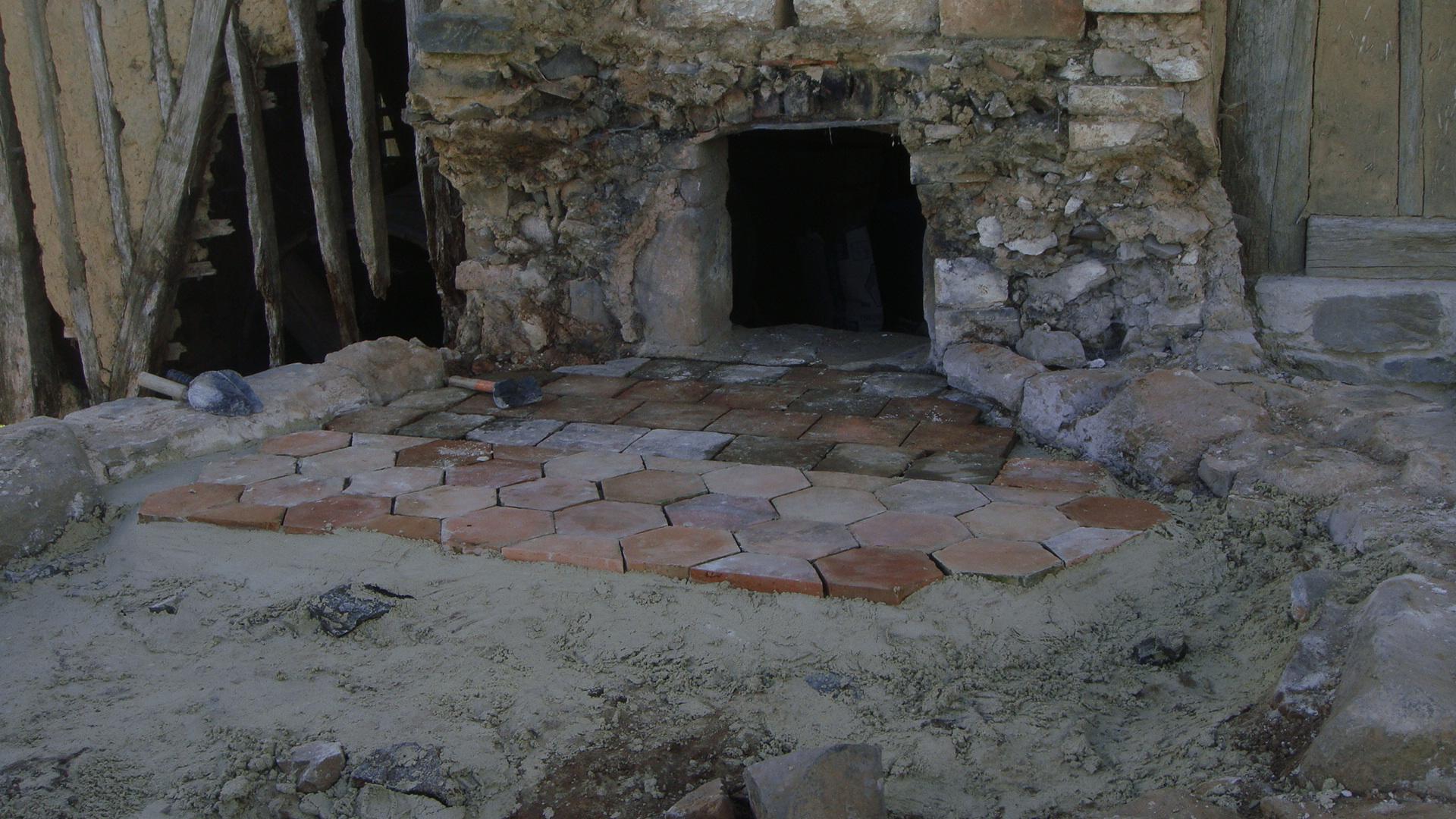 Photo de la surface plane de la sole, carreaux posés sur un mortier