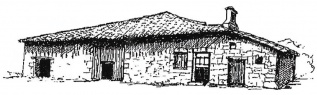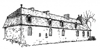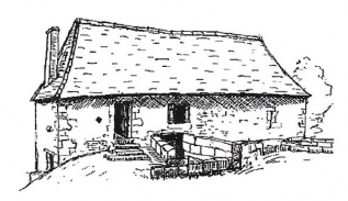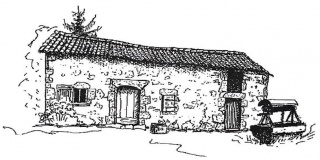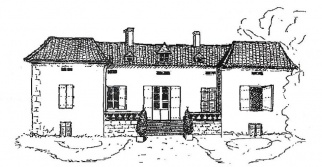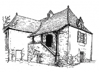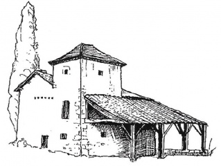 Maison forte à Monbos avec appentis ajouté de nos jours. Croquis Nicole Vlès ©