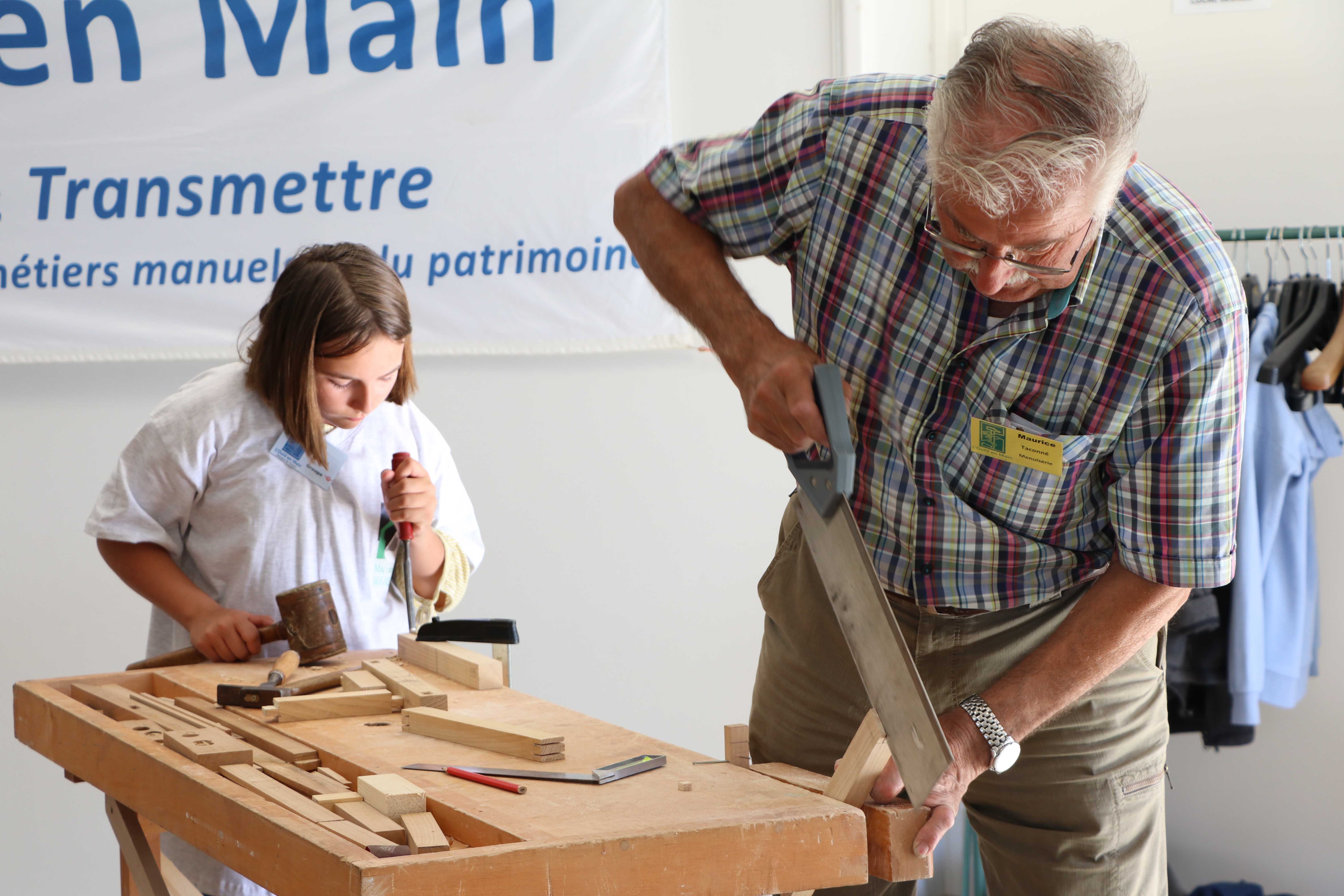 Photo d'une initiation au travail du bois lors d'un atelier organisé par l'Outil en Main.