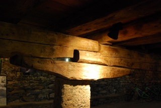 Photo d'un assemblage de liaison entre poutre centrale (chareyre) et poteau. La poutre est simplement posée. Photo de Bernard Leborne