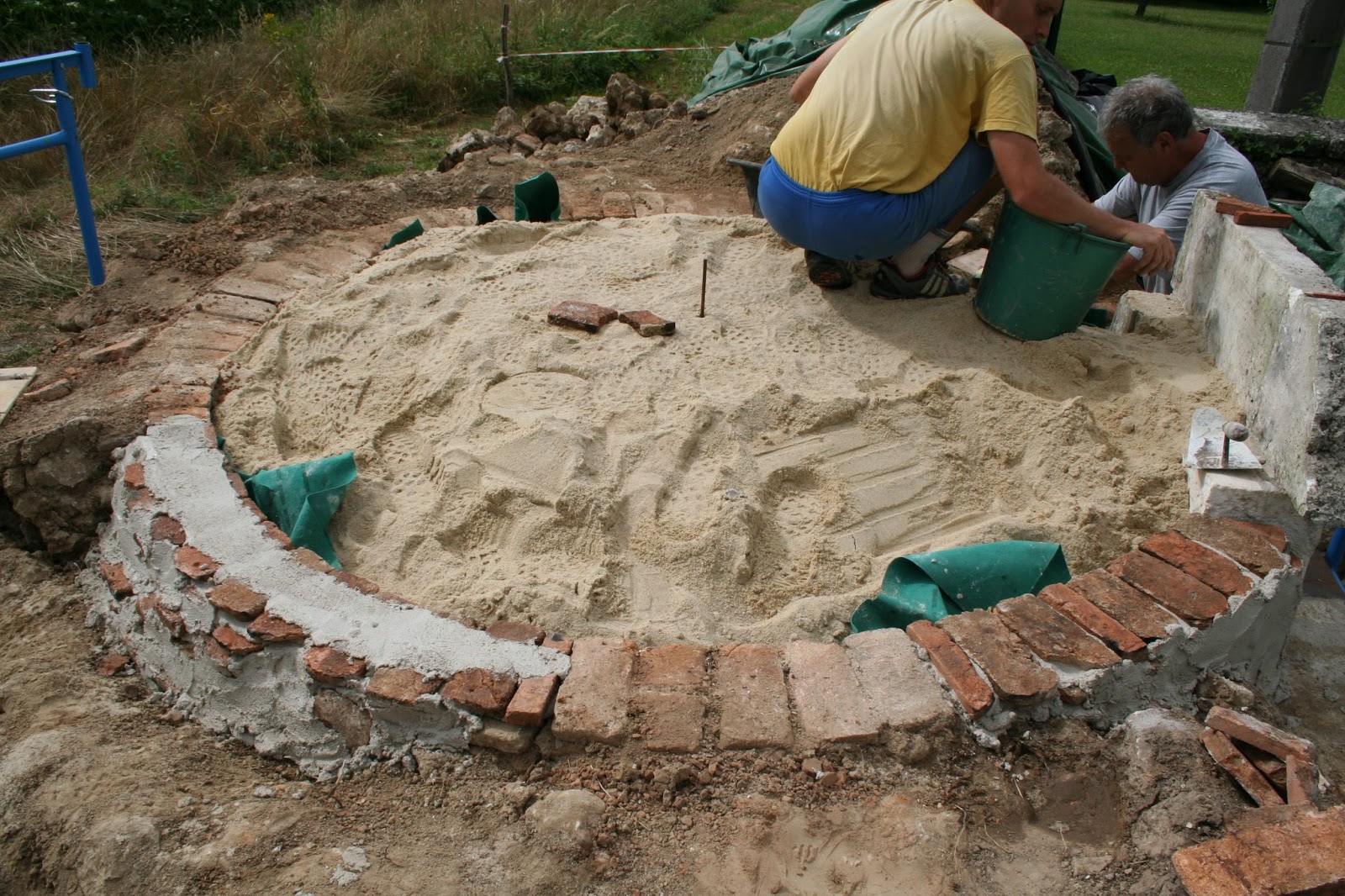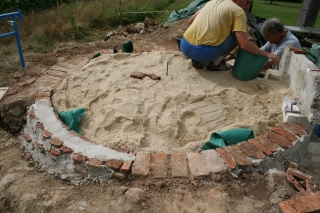 Photo de réalisation d'un coffrage en sable Maisons Paysannes de France, Délégation Dordogne-Périgord ©